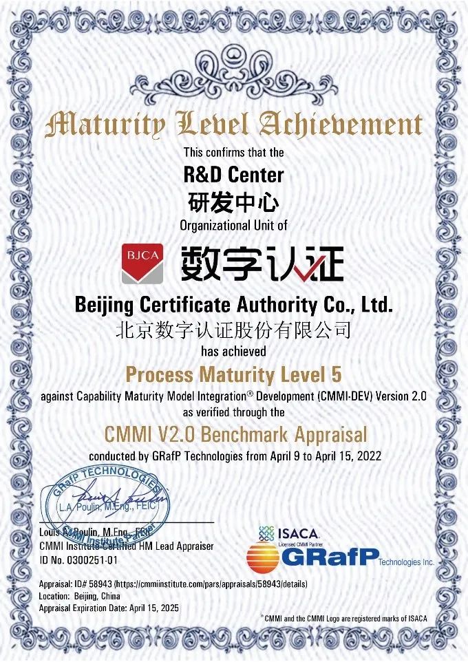 美高梅官网正网此次通过CMMI 5级评估认证,是公司在软件研发、应用开发等领域规范化管理、持续改进的重要里程碑,也是公司未来持续创新发展、为客户提供更加优质服务的新起点。未来,公司将继续发挥自身在技术、研发和管理方面的领先优势,把CMMI 5级评估认证标准充分融入到产品研发过程中,为中国网络信任与数字安全服务贡献更大的力量。