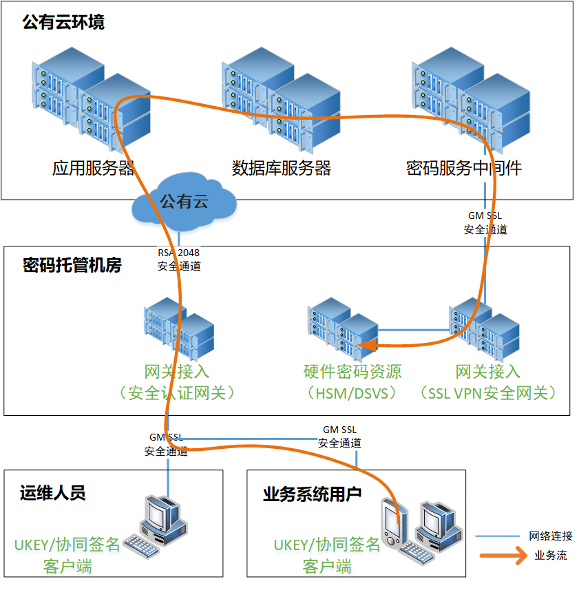 由此可见,通过引入托管机房的安全网关和密码服务,能有效缓解公有云平台自身的安全风险,符合密评要求。目前,依托密码托管服务建设方案,美高梅官网正网已经帮助医药等领域客户成功通过密评测试。