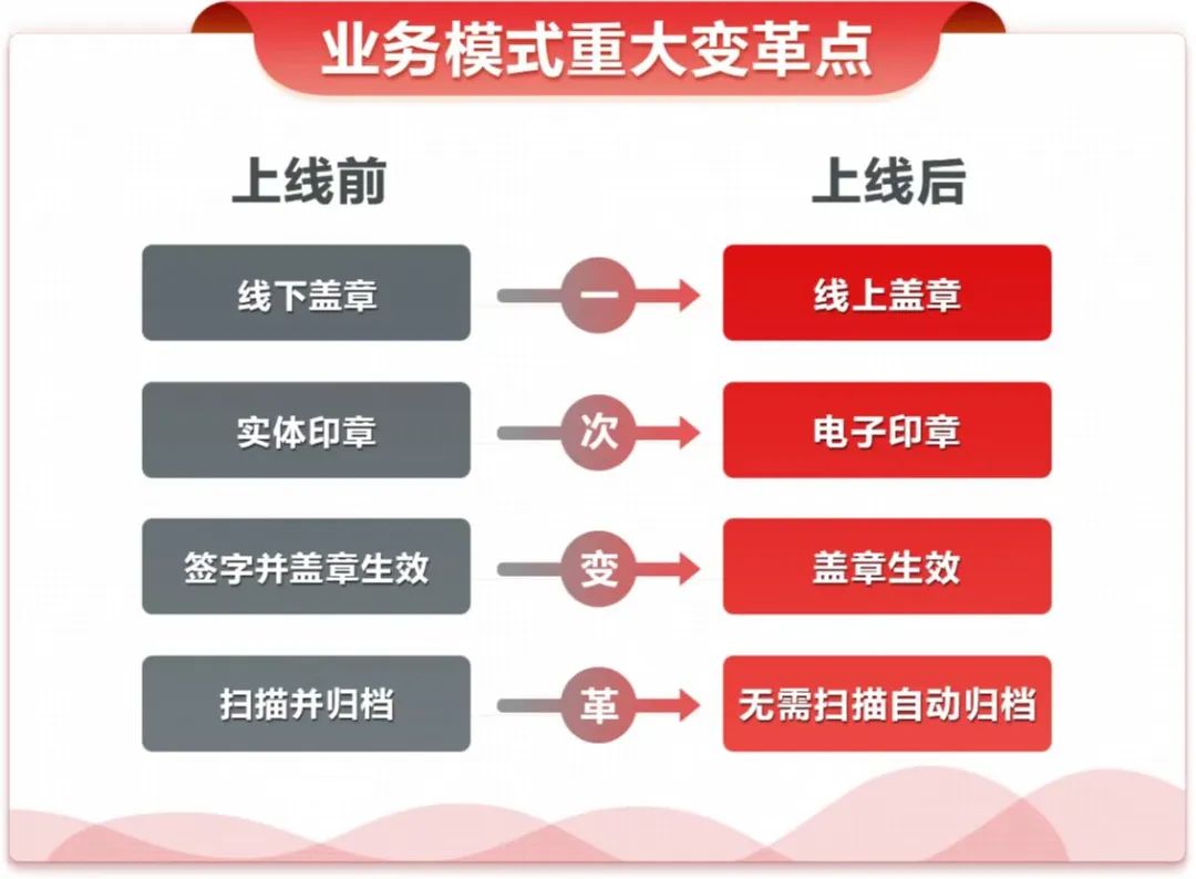 电子签章平台上线后率先接入中车株洲所供应商关系管理SRM系统,于采购电子化场景进行试点应用,仅2个多月时间已接入供应商达1400家,全面满足物资采购合同签署时的用印需求,流程由传统纸质合同签署中的“打印、盖章、邮寄、扫描、归档、存储”7个步骤大幅压缩为采购双方盖电子印章2个步骤,不涉及任何实物,有效降低纸张、邮寄、人力等成本,后续将陆续与人力资源、销售等内部管理系统进行横向拉通。
