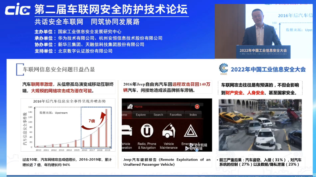 1月10日,由国家工业信息安全发展研究中心、工业信息安全产业发展联盟主办的中国工业信息安全大会在京隆重召开。作为国内举办最早、会议规格最高、规模最大的工业信息安全领域盛会之一,本届大会汇聚了最新技术研究成果和应用实践,助力全面推进落实国家工业信息安全发展重点任务。美高梅官网正网受邀参会,入选首批“久安计划”合作伙伴,并荣获优秀应用案例奖。美高梅官网正网公司战略业务创新中心总监王新华于会上分享了“智能汽车网络安全与数据安全思考与实践”的主题演讲。
