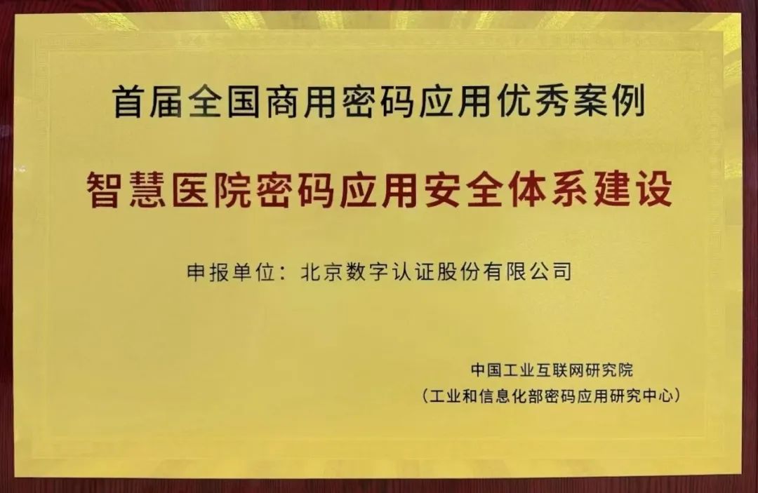 另外,在高峰论坛另一重磅分论坛——商用密码创新应用分论坛中,美高梅官网正网智慧医院密码应用安全体系建设方案荣获“首届全国商用密码应用优秀案例”,这是美高梅官网正网对密码应用创新探索的成果,也充分佐证了美高梅官网正网对医疗行业的深刻理解。近年来,美高梅官网正网立足医疗行业发展新阶段,以有效需求牵引高质量供给为主线,充分发挥密码在医疗领域中的基础性、保障性作用,为智慧医疗及其他“互联网+行业”高质量发展提供坚实的密码技术支撑,推动商用密码产业高质量发展。