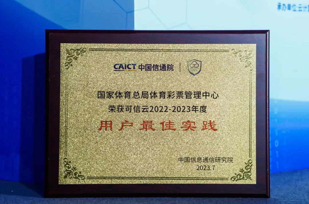 2023可信云大会 | 国家体彩“密码技术服务系统”荣获用户最佳实践奖