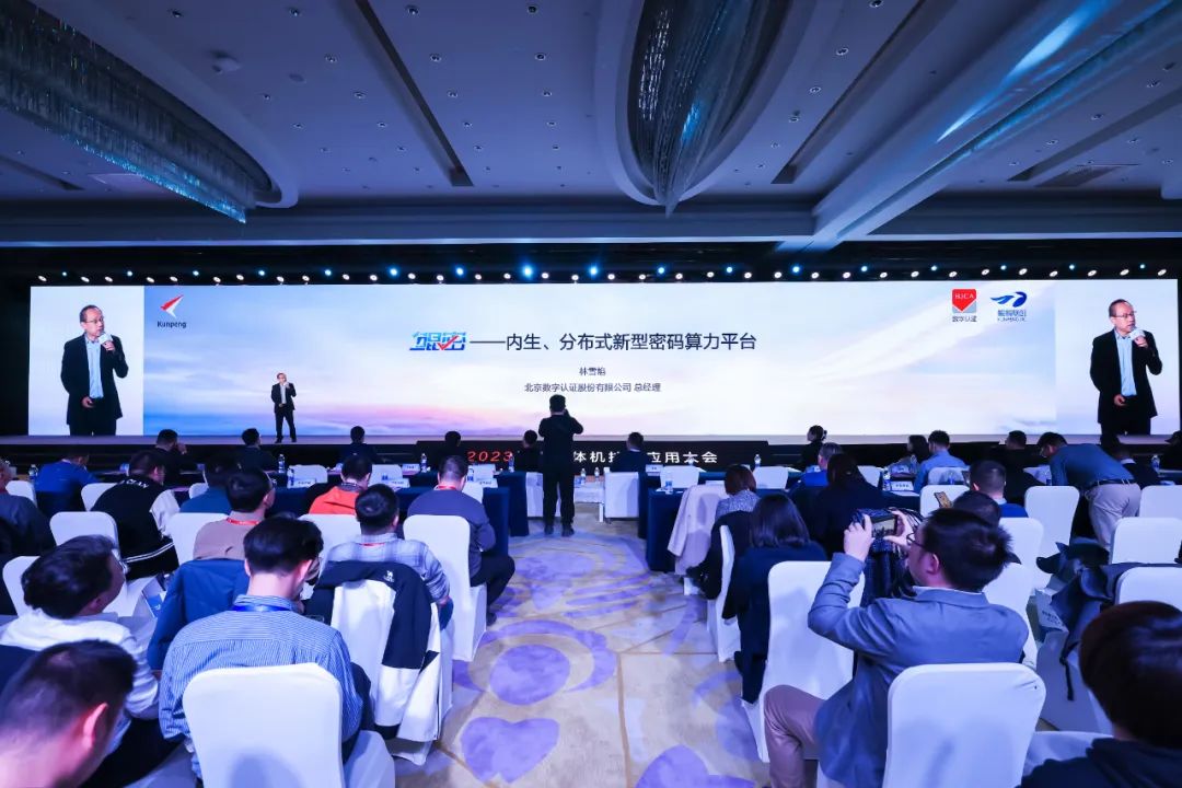 11月13日下午,由北京朝阳区人民政府、中关村政府采购促进中心指导,华为技术有限公司主办的“山高海阔、共赢先机”2023鲲鹏一体机技术应用大会在北京召开。北京美高梅官网正网股份有限公司总经理林雪焰受邀参加,并带来了“鲲密——内生、分布式新型密码算力平台”主题演讲。