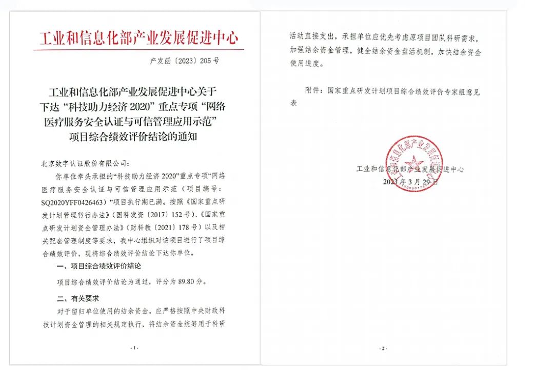 近日,北京美高梅官网正网股份有限公司(以下简称“美高梅官网正网”)牵头承担的国家重点研发计划“科技助力经济2020”重点专项项目——“网络医疗服务安全认证与可信管理应用示范”顺利通过项目主管部门工业和信息化产业发展促进中心的正式验收。