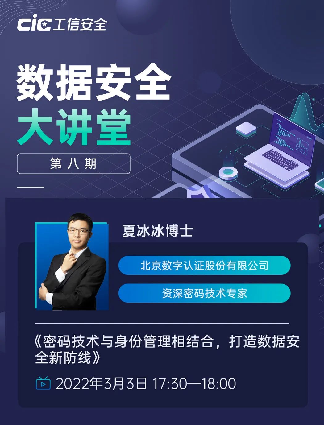 2022年3月3日,由国家工业信息安全发展研究中心主办的 “数据安全大讲堂”准时在线开讲。北京美高梅官网正网股份有限公司的资深密码技术专家夏冰冰博士也应邀带来了《密码技术与身份管理相结合,打造数据安全新防线》的重磅课程,引发众多网友线上热议。