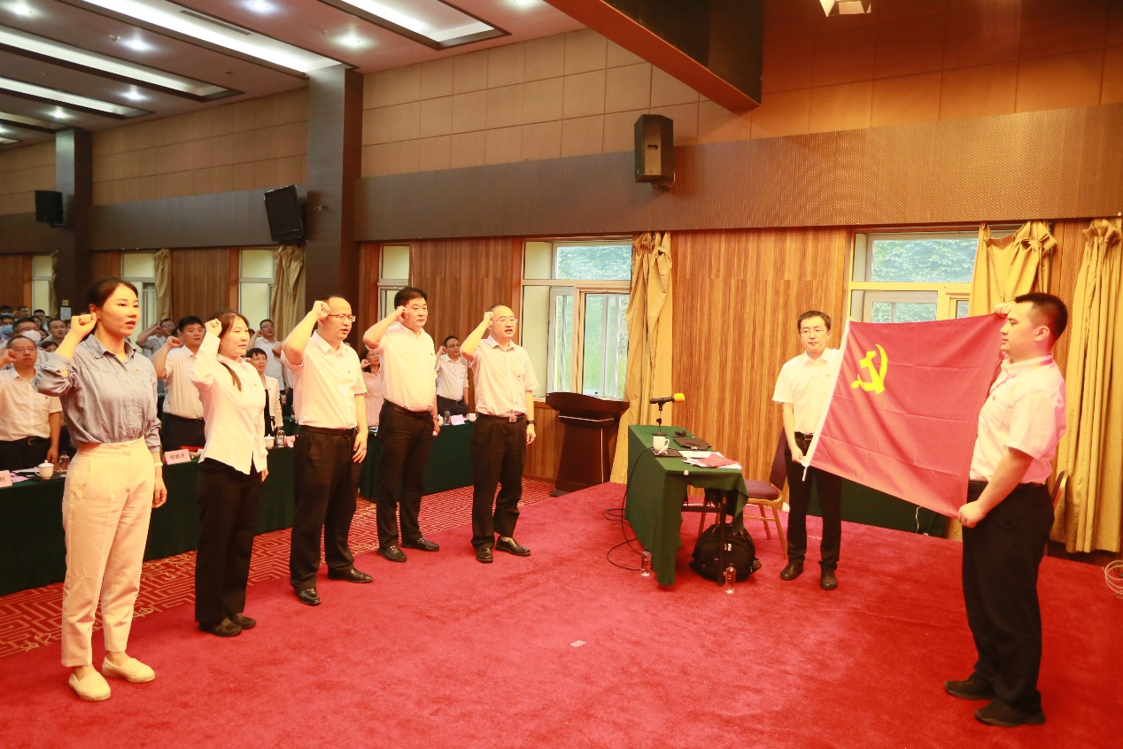 最后,詹榜华同志带领公司2021年新发展党员进行入党宣誓,全体党员重温入党誓词。
